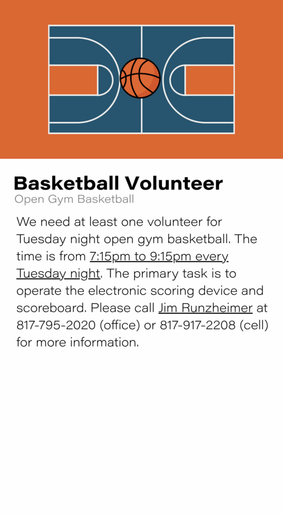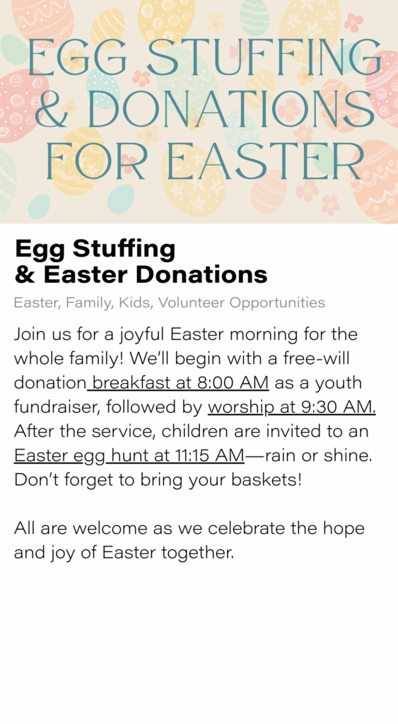 The Church Office is happy to help! Click the contact button below to send us a message.